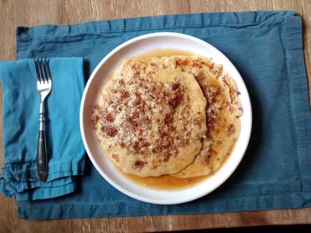 Me gusta servir los panqueques con jarabe y mantequilla. Realmente, Esto acentúa el sabor de la salchicha. Recuerde de arce de grado B es donde está el sabor. Como dicen en Vermont "grado A es para los turistas y es grado B". También dicen cosas como "No vivo en el sur, porque le echo de menos las estaciones". Por lo tanto, tal vez no deben confiarse con pensamiento racional.