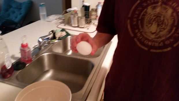 PRECAUCIÓN: Intoxicación por Salmonella es un potencial de salud de riesgo cada vez que trabajo con huevos crudos. Asegúrese de que las prácticas de saneamiento buena práctica lavando bien las manos y cualquier utensilio de cocina para minimizar el riesgo de propagación de las bacterias por contacto.
