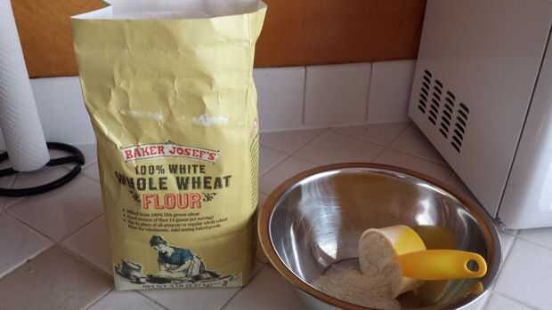 Comience agregando el 3/2 tazas de harina a su tazón. Sugiero utilizando la 1/2 taza para la gente perezosa ultimate; Voy a explicar como ir a lo largo. Una vez que haya terminado, enjuague brevemente y ponerlo a un lado para más tarde. Luego añadir el polvo de hornear y la sal.