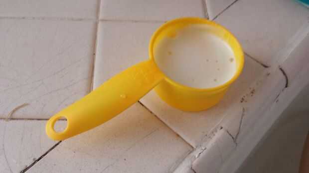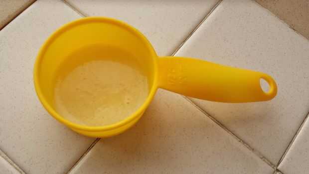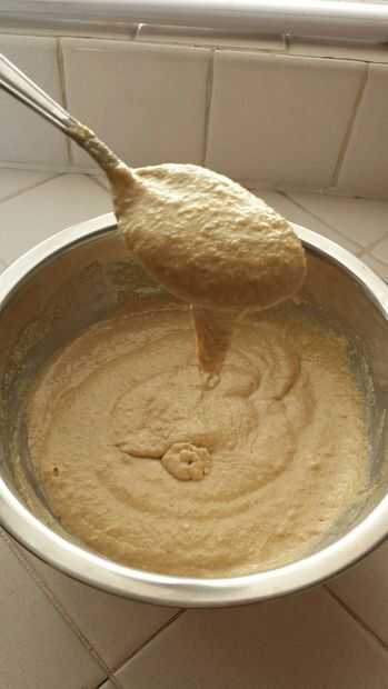 Corte 2 cucharadas de mantequilla y ponerlo en tu lavado 1/2 taza taza de medición. Pop en el microondas durante 20 segundos fundir antes inmediatamente (antes de que cualquiera de puede solidificar) verter y mezclar a la masa. Cuando está completamente mezclado, su masa no debe estar goteando como agua; debe ser un poco grueso, goteo en trozos en lugar de gotas de liquidez. Si es demasiado grueso, añadir un poco (cantidades arbitrarias...) de la leche y mezclar hasta que quede la consistencia adecuada. Si es muy delicuescentes, añada la harina y mezclar hasta que quede la consistencia adecuada.