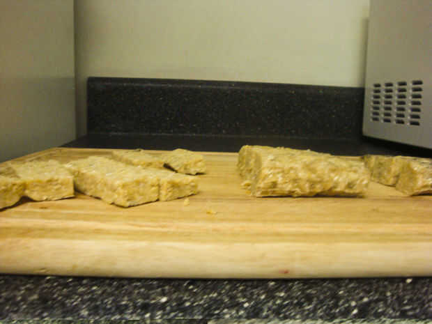 Consejo: Comience el agua hirviendo antes de que usted corte el tempeh. Entonces el agua casi estará listo cuando haya terminado de cortar el tempeh.