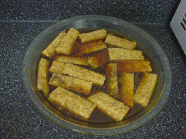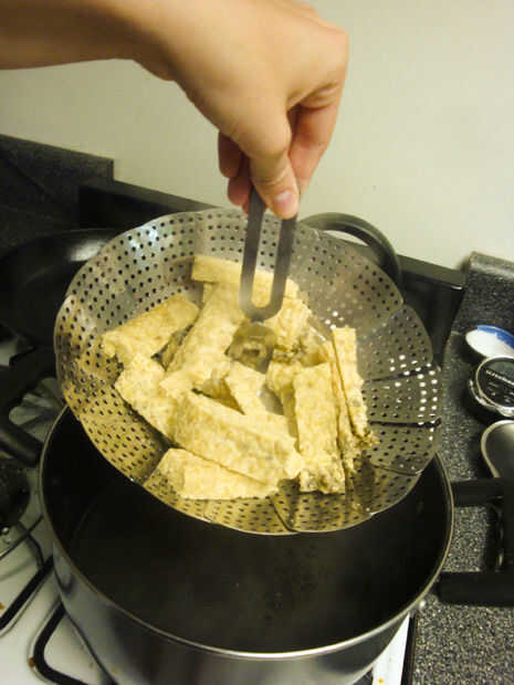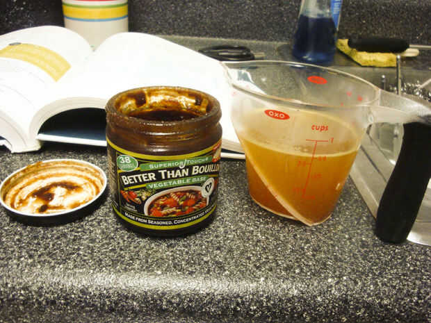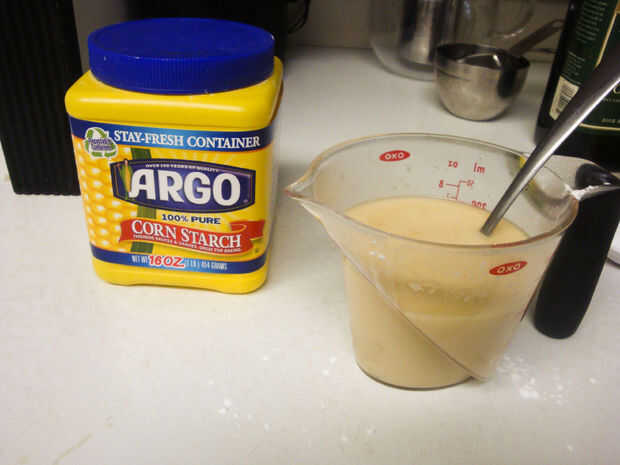 Mezclar 3/4 c. de caldo de vegetales con 2 cucharadas de maicena y reservar.