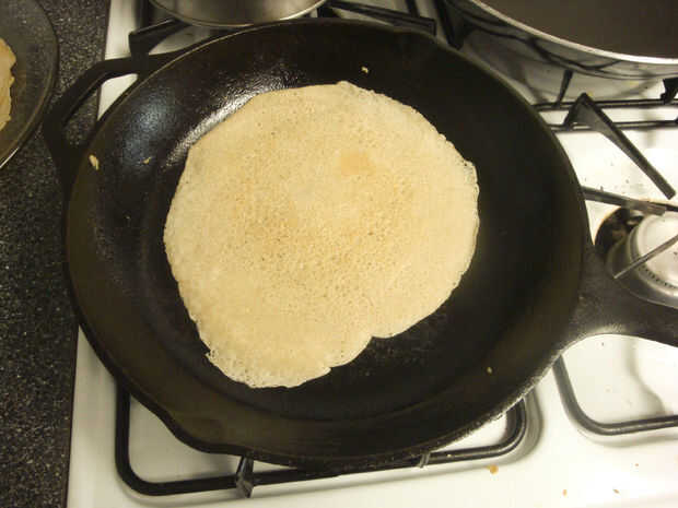 Cocinar durante 1 minuto y 30 segundos. La FLIP. Cocinar 30 segundos en otro lado. Apilar en un plato.