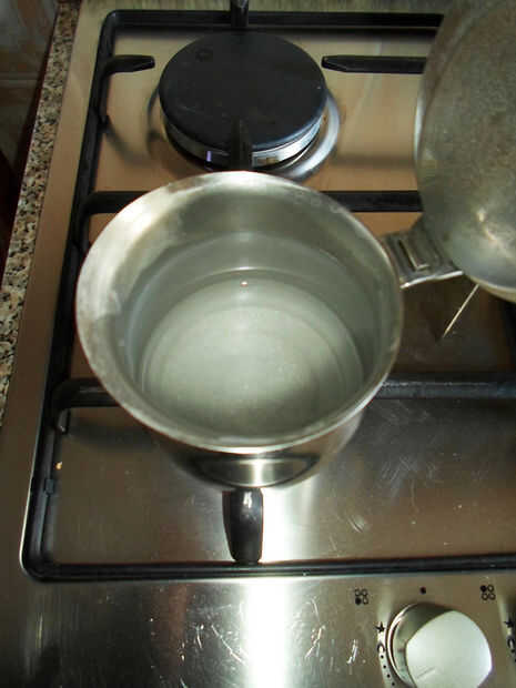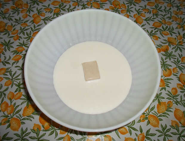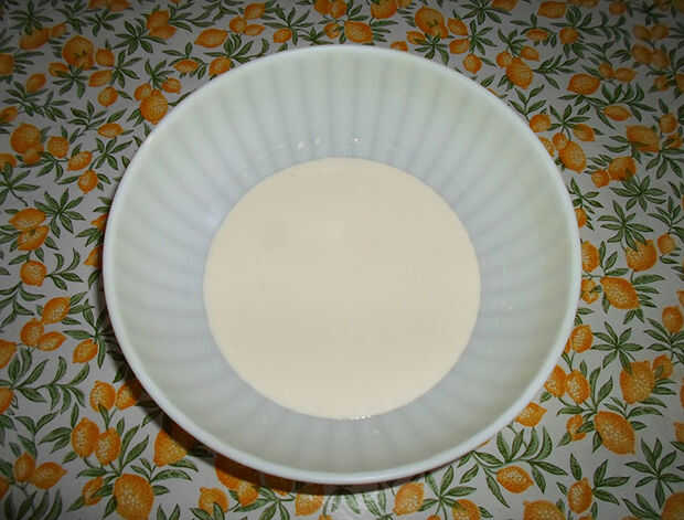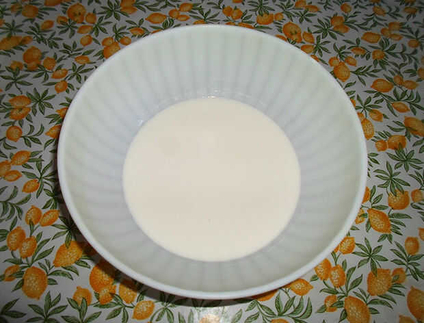 Vierta su agua con sal en un bol y agregar la leche y la nata líquida y espere que se enfríe un poco.
