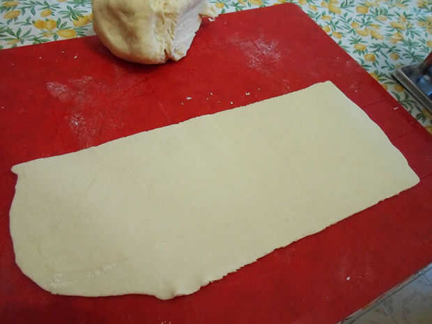 Trabajar con un poco de masa a la vez, así que corte un trozo de masa y cubrir el resto en un recipiente.