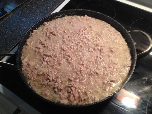 Una vez todo disuelto agregar la leche. No tienes que tener la carne de cerdo dorada en este punto. 8 horas de cocción hará todos rosa ir lejos...