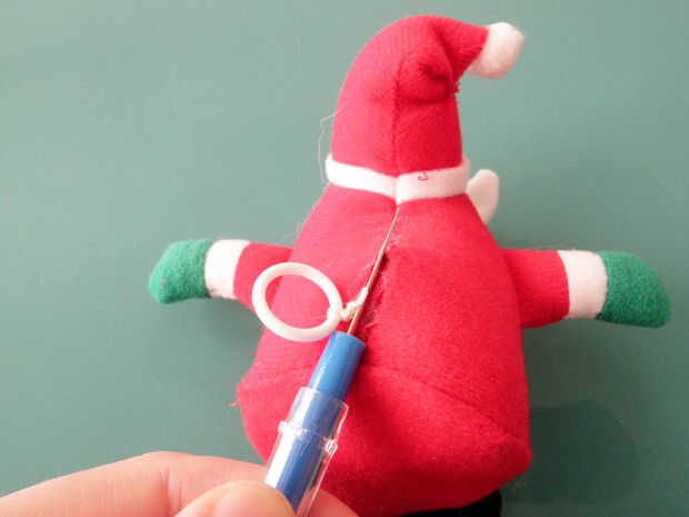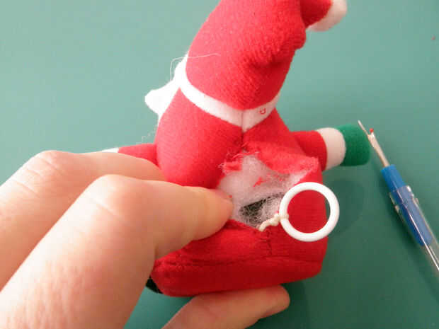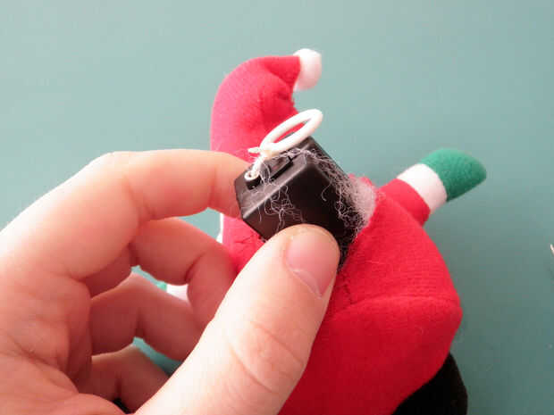 Retire el mecanismo de tirar-cuerda vibrante de su animal de peluche. Tenga cuidado de no cortar el cordón cuando corte al hilo de la costura.