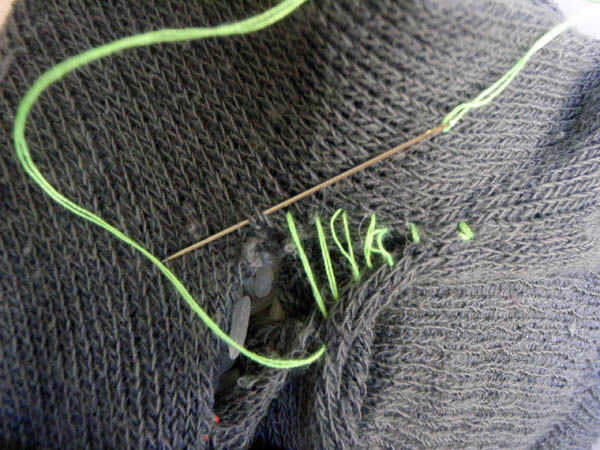 Pespunte y coser la pierna izquierda y en el pie derecho antes de costuras otra vez.