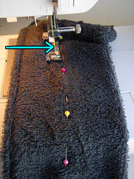 -Colocar la aguja a la posición extrema derecha, y luego coser las piernas.