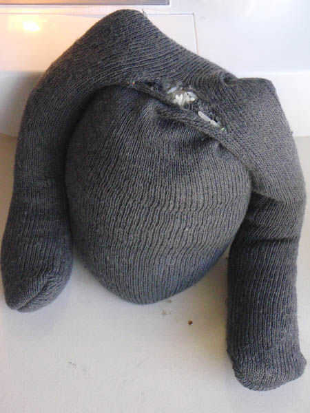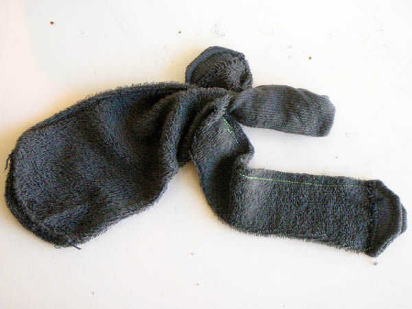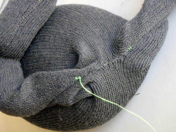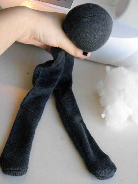 -Un puño lleno de relleno en la materia a través de la entrepierna y empújelo hasta el dedo del pie. Se trata de la cabeza.
