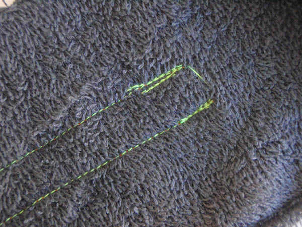 -Coser la entrepierna con una puntada escalera aseada. Coser dos veces sólo para asegurarse de que no tenga pérdidas.