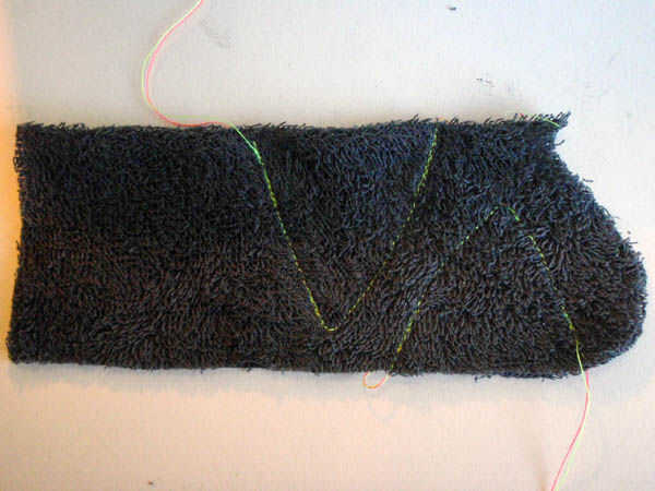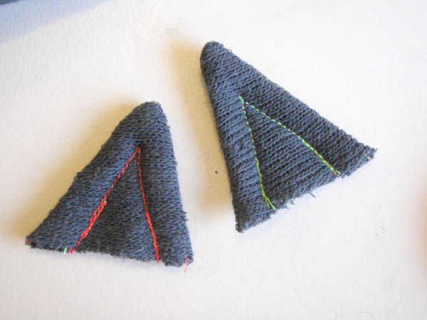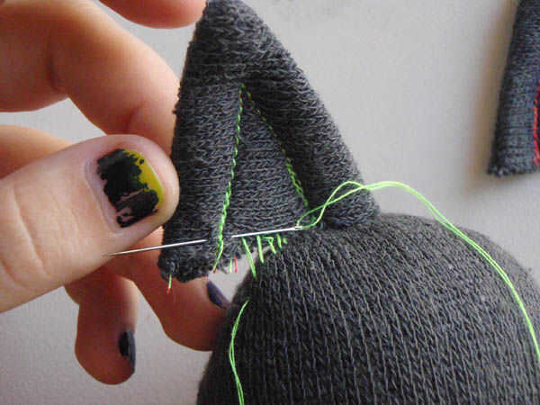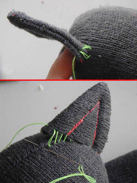 -Coser orejas a la cabeza con una puntada escalera aseado todo. No coser a través de ambas capas a la vez, pero a través de cada capa individualmente para obtener sus oídos esté en posición vertical.