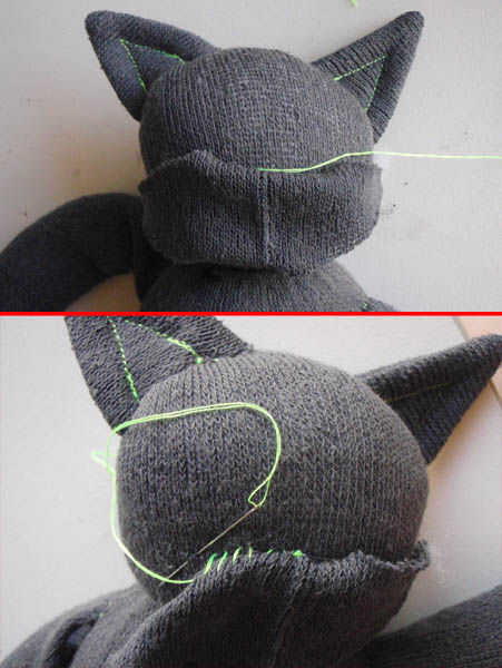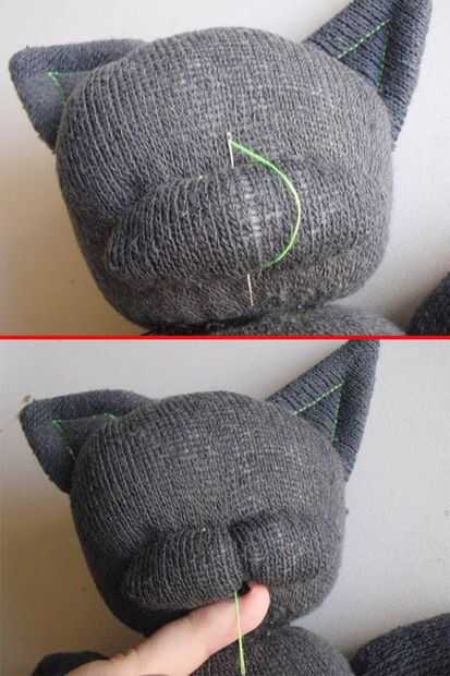 Puede utilizar el último de su hilo para definir la boca si quieres tener gato-como características. Simplemente enrolle el hilo a través de la parte inferior y superior, tensar, nudo de.