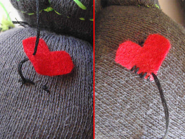 Y como un bono adicional cosí sobre un corazón de fieltro, para hacerle saber que me importa. Si usted quiere tomar el tiempo, puede hacer todas o algunas de sus características como este. Es realmente fácil de usar fieltro si quieres grandes áreas de color sólido.
