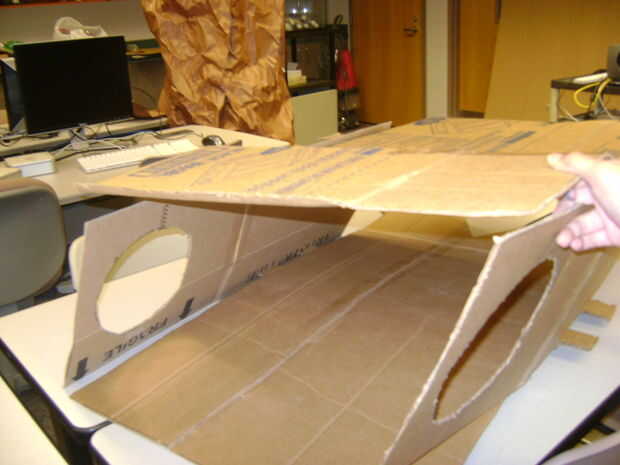 este es un proyecto de escuela.Debo diseñar y desarrollar un disfraz de Halloween de cartón, construido por la ranura, temática marina.El traje debe acomodar a clientes 11-14 años.  El traje debe ser construido de ranura.El traje debe usar sólo con c