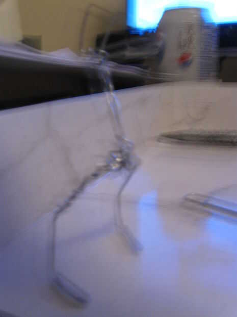 La criatura fue empedrada de una vieja cabeza de ducha, accesorios sin uso de una chimenea de gas, la parte superior de una caja de Eddie Bauer Watch, algunos cables y algunos el tubo del encogimiento. Los brazos y las manos están hechas de alambre y