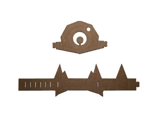 Imprimir una copia de la plantilla de pdf de ATE. Coloque la plantilla sobre el cartón de la E-flauta dejando suficiente espacio para completar el corte sin funcionamiento fuera de cartón. Ahora firmemente utilizar un cuchillo Xacto para cortar el contorno, asegúrese de cortar a través de la plantilla y la E-flauta para ambas piezas de desgaste.