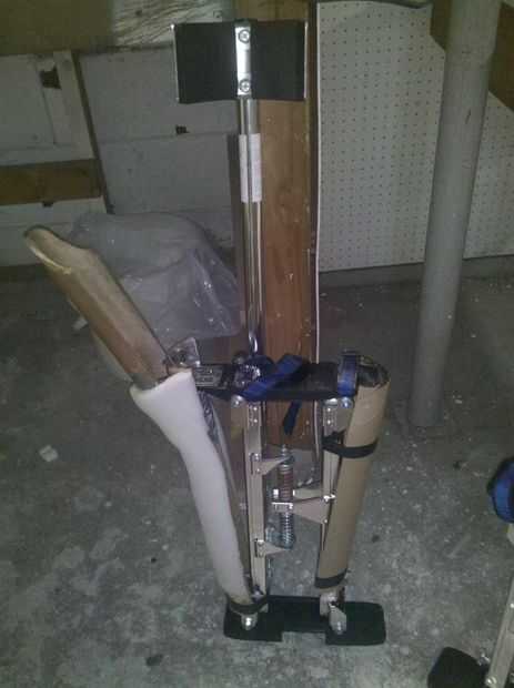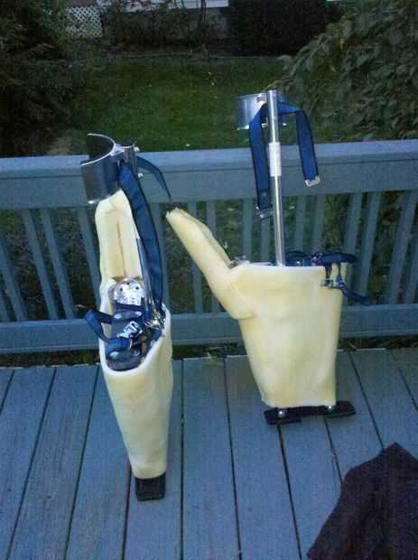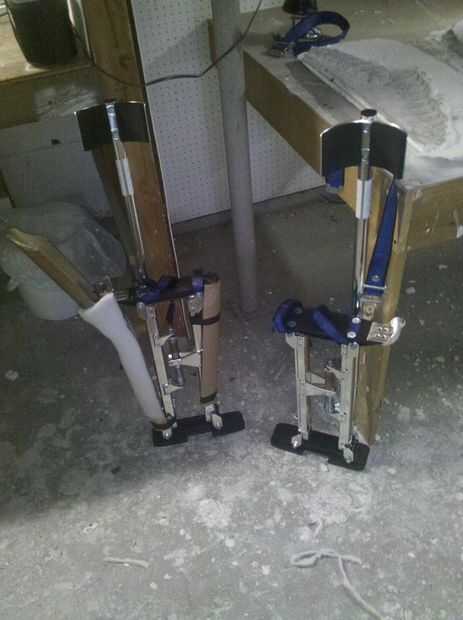 Ahora con completa le mostraré cómo agregar un pie, guante, ext. Aquí está Cómo hice esta parte. LaTeX pies pueden ser débiles por lo que primero les rellena de espuma, una vez hecho esto se extendía alrededor de los zancos de yeso de la pierna. Ya que los zancos todavía necesitarán sus piezas móviles que no se utilizarán ninguna cinta, estos libremente permanece en posición.