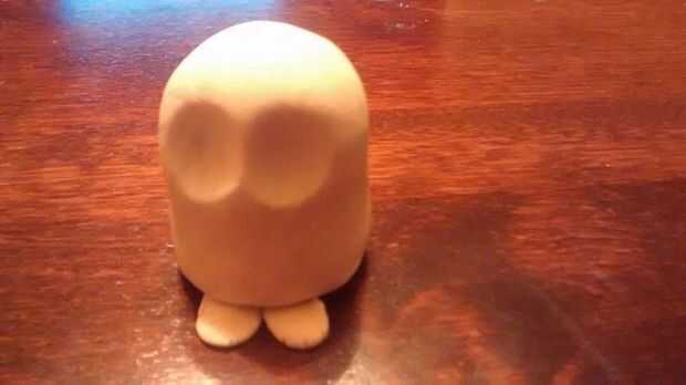 Lo que usted necesita:bola de diámetro 1 x 1 1/4 de pulgada de arcilla (BOC)1 x 1/2 pulgada diámetro BOC4 x 1/3 pulgadas diámetro BOC1 x 1/4 de pulgada de diámetro BOC2 x BOC súper pequeñoPalillo de dientesPaso 1:Presione la parte inferior del BOC má