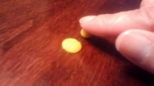 Lo que usted necesita:bola de diámetro 1 x 1 1/4 de pulgada de arcilla (BOC)1 x 1/2 pulgada diámetro BOC4 x 1/3 pulgadas diámetro BOC1 x 1/4 de pulgada de diámetro BOC2 x BOC súper pequeñoPalillo de dientesPaso 1:Presione la parte inferior del BOC má