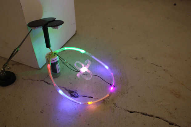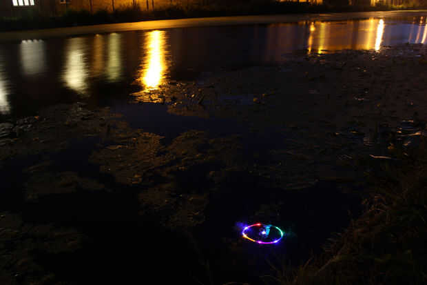 Así que, inspirados en la naturaleza, este proyecto de arte recrea criaturas hermosas, misteriosas, bio-luminiscentes de alta mar en el entorno urbano de canal, río o estanque. En la fase de prueba inicial de este proyecto, he construido 2 criaturas, basada libremente en una medusa y el otro en una babosa de mar.