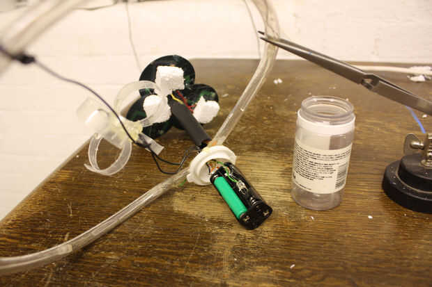 agallas brillantes interior son 4 anillos de plástico transparente (corte de una tapa de desodorante) pegado a un parpadeo del LED RGB