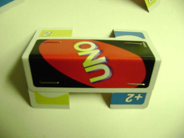3. Corte una tarjeta en uso la mitad, una mitad para la otra pierna, doble en medio ancho. Tomar la otra mitad y corte por la mitad longitudinalmente, luego doblar ancho. Esta es la cola.