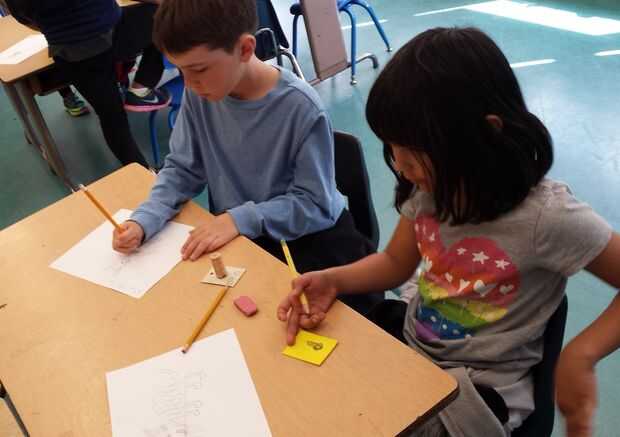 En sus escritorios, los estudiantes seleccionar sus animales, uno de cada lista y escriba el nombre de cada animal en la parte superior de su documento. Como una manera de empatía alentador hacia las criaturas vivas, sugerir a los estudiantes a seleccionar animales que son sus favoritos y pensar por qué les gusta tanto. La sala del círculo como están trabajando los alumnos, animándoles a pensar las maneras en que los animales se mueven y las partes del cuerpo que necesitan para moverse (piernas, aletas, alas, etc.). Debe pensar también en las texturas de su piel, piel, escamas, etc.. Estas indicaciones ayudarán a los estudiantes a desarrollar diseños distinguibles.