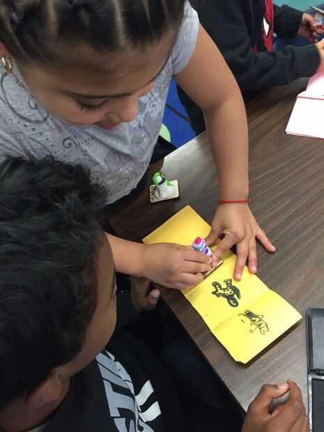 Crear tiempo para que los estudiantes de los demás libros de la estampilla y aliéntelos a escribir dibujos animados burbujas de discurso con sus criaturas para darles una voz.