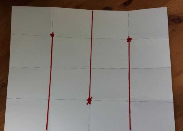 Una manera fácil de hacerlo es a través de un simple pliegue de acordeón una página libro. Utilizando una sola hoja de papel de copia 11 x 17 pulgadas, los estudiantes deben doble el papel dos veces horizontalmente y dos verticalmente. Abrir los pliegues y utilice un par de tijeras para cortar el pliegue vertical centro pasado dos pliegues horizontales, detener las tijeras en el pliegue 3. El papel de la otra dirección del tirón y corte las dos alrededor de pliegues verticales en dos pliegues horizontales, parando en el pliegue 3. (Véase el cuadro de la plantilla - el show de las líneas de puntos las marcas de pliegue, rojo líneas donde los alumnos deben cortar). El libro puede ser replegado a lo largo de los dobleces para un pliegue acordeón que en posición plana y luego "flutter" cuando abrió.