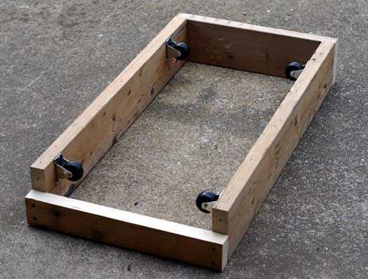 Esto es una estructura bastante simple así que no entraré en mucho detalle. Usé madera de 2 x 6 porque me ha pasado tener a mano varias piezas cortas que eran apenas el tamaño correcto, pero 2x4s debería funcionar bien también y sería un poco más ligero. Mi lado son 34 pulgadas de largo y las puntas son de 19 pulgadas de largo que deja una separación de 16 pulgadas en el centro. Tenga en cuenta que un extremo necesita ser rasgado abajo de 2.5 pulgadas más bajos que el otro porque el tambor tiene que invadir la caja ligeramente para que los materiales gruesos se derrame fuera del tambor. Ya he usado 2x6s (1.5 x 5.5) mi vertedero final fue 3 pulgadas de ancho. Si usas 2x4s (1.5x3.5) entonces su pieza final tendría que ser de una pulgada de ancho.