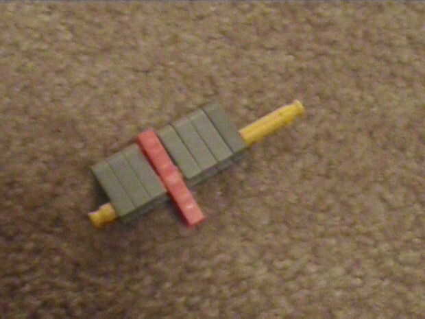 ponga 3 conectores gris de la barra amarilla y luego deslice un conector naranja después en 4 piezas gris.
