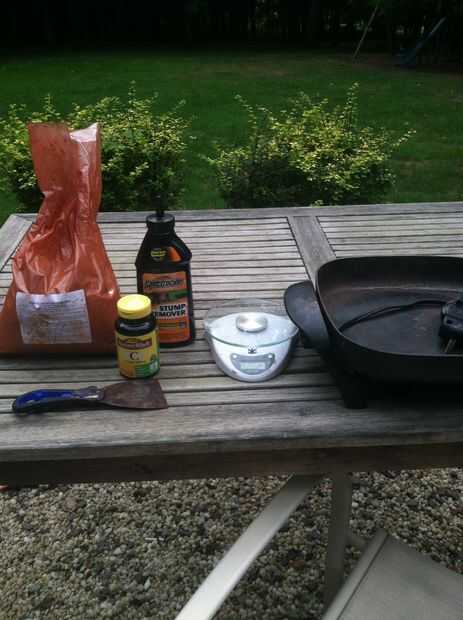 nitrato de potasio 1: yo tengo la mía de spectricide removedor de tocón que encontré en Home Depot. 2 vitamina c tabletas/cápsulas: se pueden comprar en cualquier farmacia del óxido de hierro 3: puede ser hecha o comprada a proveedores de pintura. Un lugar barato para comprar es baileypottery.com 4. Una sartén viejo 5. Una escala (precisión de un gramo o menos)