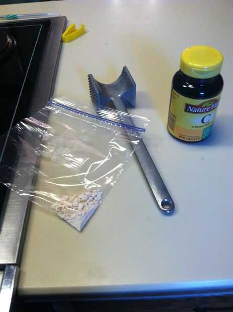 Para este paso, a que necesita 11 triturados hasta 500mg tabletas/cápsulas de vitamina c y disolver en 30 esa agua hirviendo. Después de que la vitamina c se disuelve, debe filtrar a través de una doble capa de filtro de café o toalla de papel para deshacerse de la fibra de celulosa. Si utiliza toalla de papel, asegúrese de exprimir todo el líquido, porque tiene una tendencia a absorber mucha de la vitamina c. Una vez que se han filtrado todas las fibras de celulosa hacia fuera, almacenar su agua vitamina c en un vaso pequeño. Necesitarás esto para más adelante.