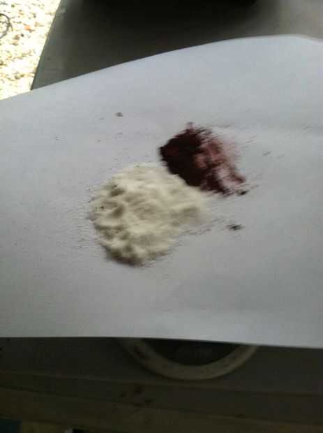 Mida el nitrato de potasio (removedor de tocón) y óxido de hierro. Aquí son las cantidades: 6,2 gramos nitrato de potasio, óxido de hierro.5 gramos.