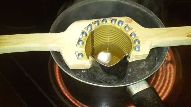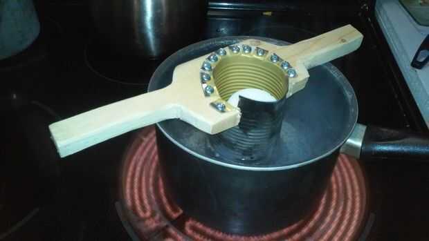 Simplemente coloque en una olla de agua hirviendo. La cacerola debe ser lo suficientemente profunda como para que la parte inferior del crisol no descansa sobre el fondo de la olla.