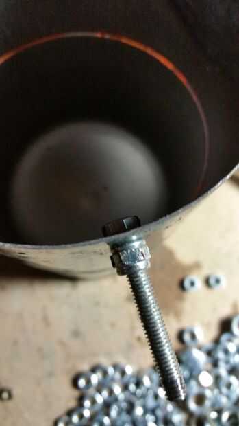Perforé agujeros e inserta algunos pernos industriales buena que había almacenados y ajustados con anillos y tuercas de bloqueo.