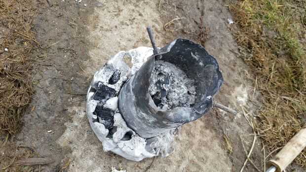 Mi única opción era a literal voltee la fundición y verter las brasas hacia fuera (que lo hice en una zona de tierra seca) y luego deje que se enfríe.