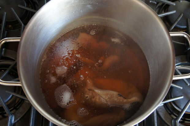 Asegúrese de que las orejas de cerdo no tienen ningún pelo en ellos. Mina eran muy limpia. Si ves algunos stragglers, utilice una maquinilla de afeitar para los recorte. Colocar las orejas de cerdo en una olla y añada dos galones de agua. Poner a hervir y cocinar durante 20 minutos. Colar las orejas y volver a la olla con 2 galones más de agua. Agregar la canela. Poner a hervir, luego reduzca el calor a fuego lento y cocinar durante 3 horas.