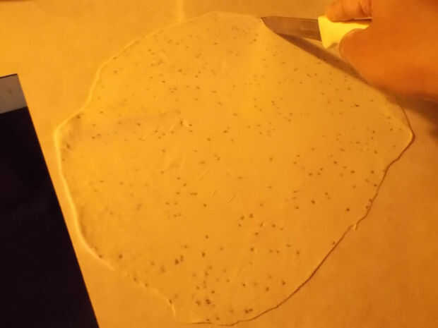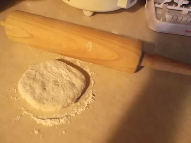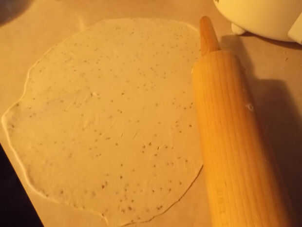 2. a continuación el rodillo la masa sobre una superficie plana.