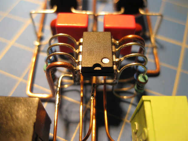 Usé alambre esmaltado de un transformador antiguo para darle una apariencia consistente pero también tiene una buena cantidad de aislamiento contra cortocircuitos.