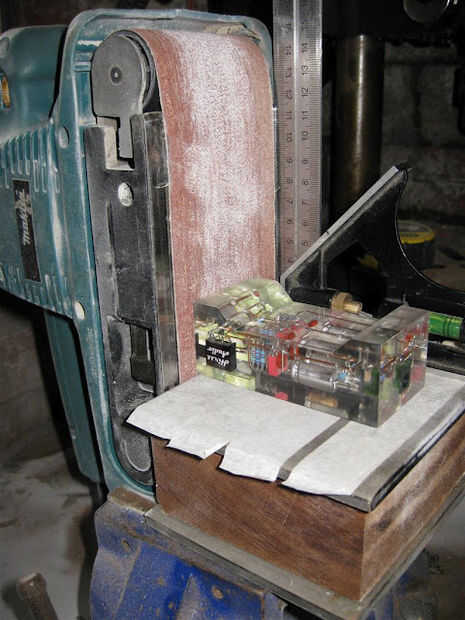 Utilicé cinta lijadora lleno fue fijada en un vicio (por favor tenga cuidado al hacerlo!)