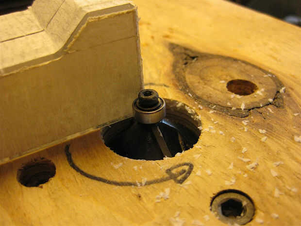 El cojinete en la broca de fresadora sigue el lado plano un chaflán hasta alrededor de los bordes del corte.
