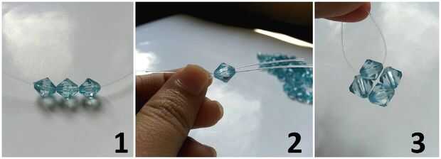 3 perlas bicono del hilo de rosca en la rosca de plástico, configurar las 3 cuentas en el centro de la rosca,