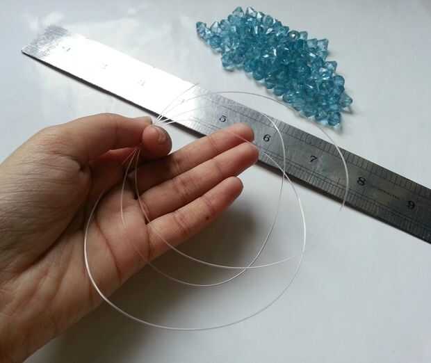 Cuando el cristal moldeado cadena alcanza su hilo de longitud requerida el pasado algunas perlas aleatoriamente con el hilo restante para bloquear las cuentas.