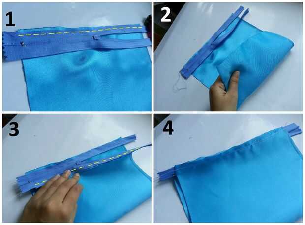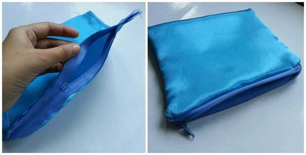 La pieza interior del doblez en la mitad y colocar una cremallera coincidente con él, (en este caso, era la mejor opción para el cierre de la bolsa de la cremallera).