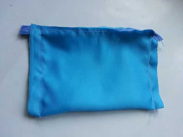 Medir el tamaño de la bolsa y cortar una pieza interior para él. Usé a la tela azul del satén de la pieza interior como los granos que utiliza azul.