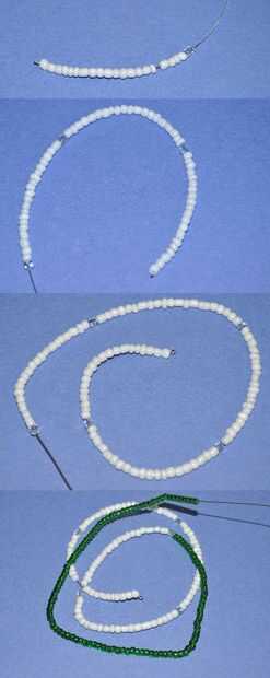 En las fotos anteriores, el patrón es 20 cuentas blancas seguidos de grano claro 1. Repitiendo este patrón 5 veces hace 5 pétalos.
