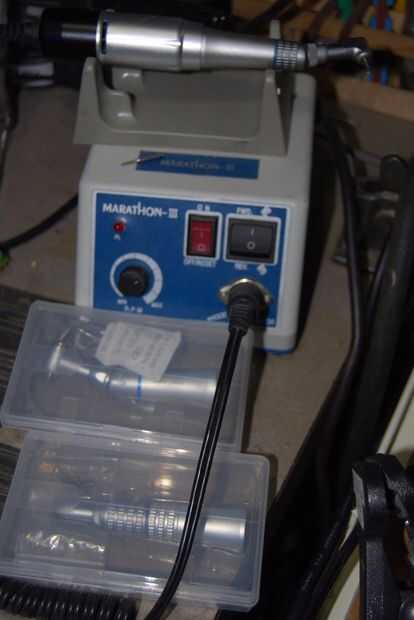 Después de eso, una herramienta dental escogió para arriba sucesivamente ebay es realmente excelente. Tengo la cabeza baja y alta velocidad para él. El cabezal de alta velocidad puede contener 1.65mm rebabas por lo que es ideal para el trabajo fino. Es bastante caro, sin embargo.