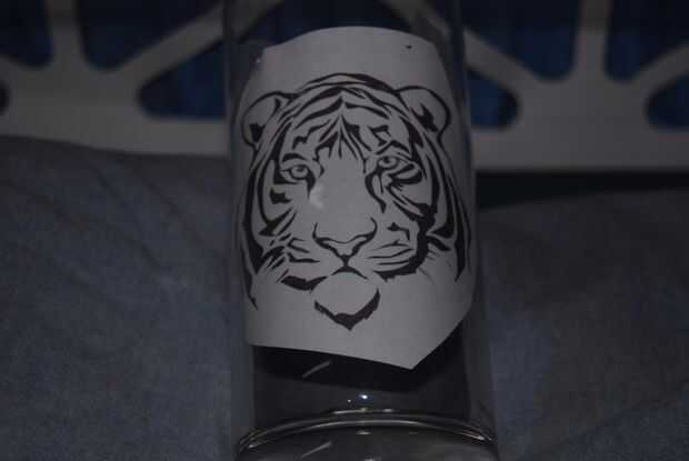 Corte las ilustraciones de la hoja de papel con solo un poco borde. Coloque dentro o detrás del vidrio, moverlo alrededor hasta que esté nivelada y coloca donde quiere y sellen con unos trozos de cinta adhesiva transparente. Asegúrese de que presiona contra el vidrio completamente, incluso si tienes arruga un poco.